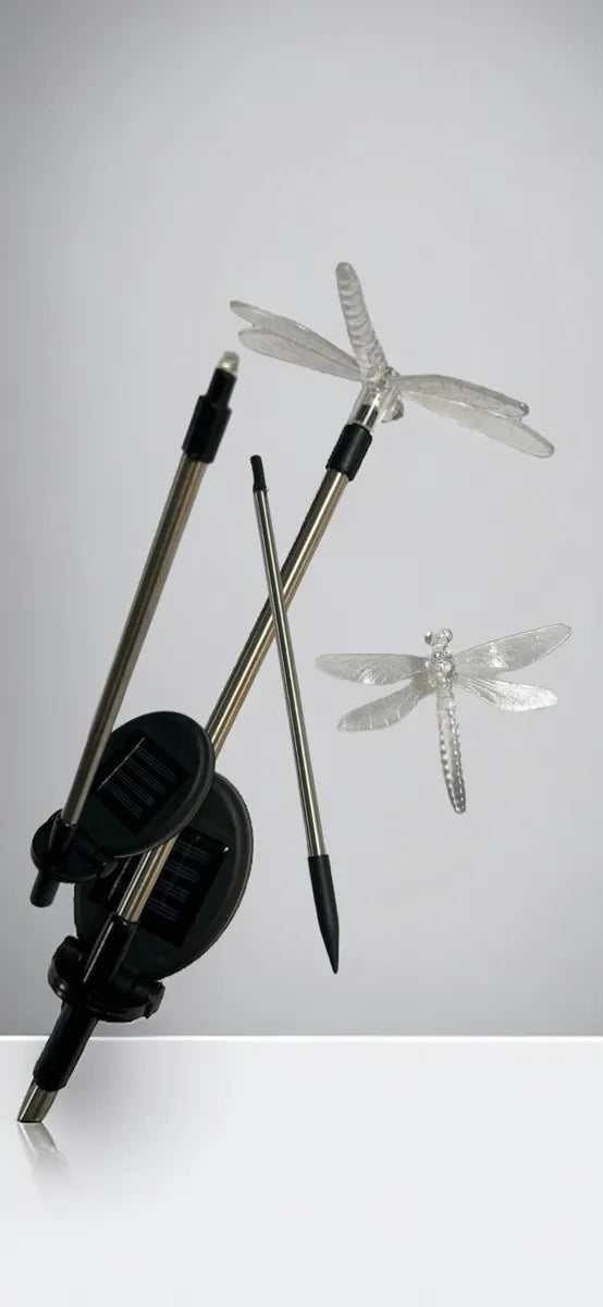 Adorno de Jardín: Mariposa-Libélula Luz Led con Panel Solar