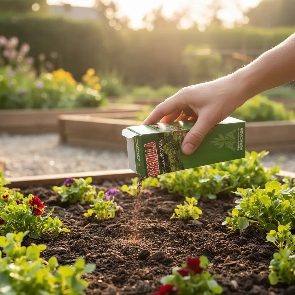 Modo de Usar: GRAMILLA AGRO–A se aplica directamente, y la caja de 250g es suficiente para sembrar 25 metros cuadrados.